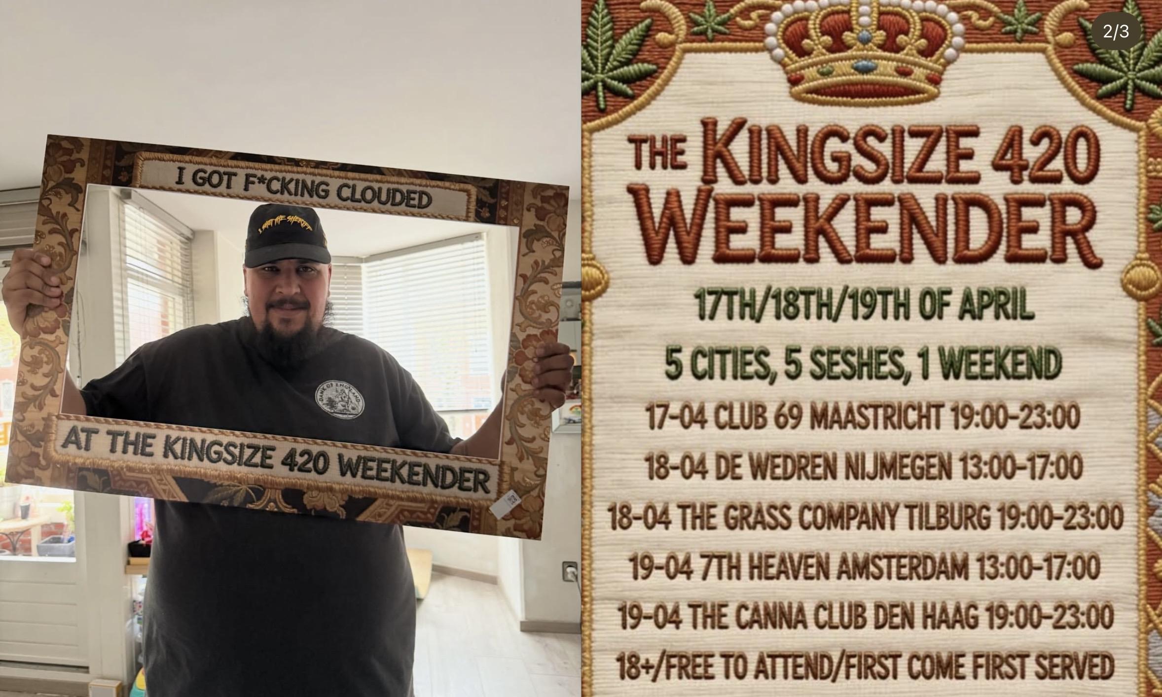 De Kingsize 420 Weekender is een driedaags event dat plaatsvindt op 17, 18 en 19 april. In plaats van alles op één locatie te organiseren, trekt het concept door Nederland en brengt het de experience naar de mensen toe.